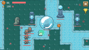 Background: In the year 30XX, the world is getting warmer, the polar ice caps are melting, submerging all the land in the world. People can now adapt and live under the sea, but have to face many problems such as famine, lack of resources, ... leading to many continental wars. Bouble, a brave girl and possessing a power from one of the 12 Greek myths of the resistance, is protecting the country from resource invaders, in order to exploit raw materials for evil purposes. Her mission is to protect resources, unlock new powers and survive as long as possible.